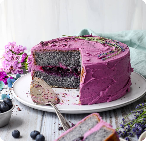 Experience the burst of fruity delight with our Blueberry Cake. Soft, spongy layers are infused with tangy blueberry compote and topped with luscious cream for a refreshing twist.