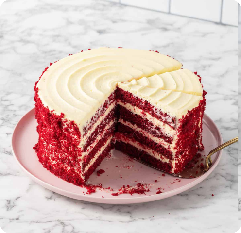 Celebrate every moment with our Red Velvet Cake. With its vibrant red layers, silky cream cheese frosting, and a hint of cocoa, this classic dessert is an irresistible treat.